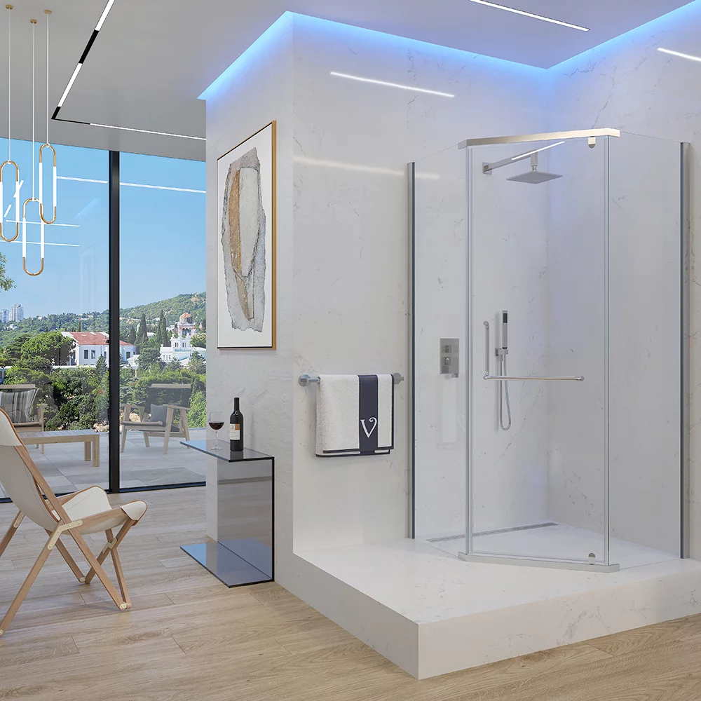 Душевой уголок, пятиугольный VSP-1S900CLG 900х900х1950 профиль брашированное золото стекло прозрачное VINCEA